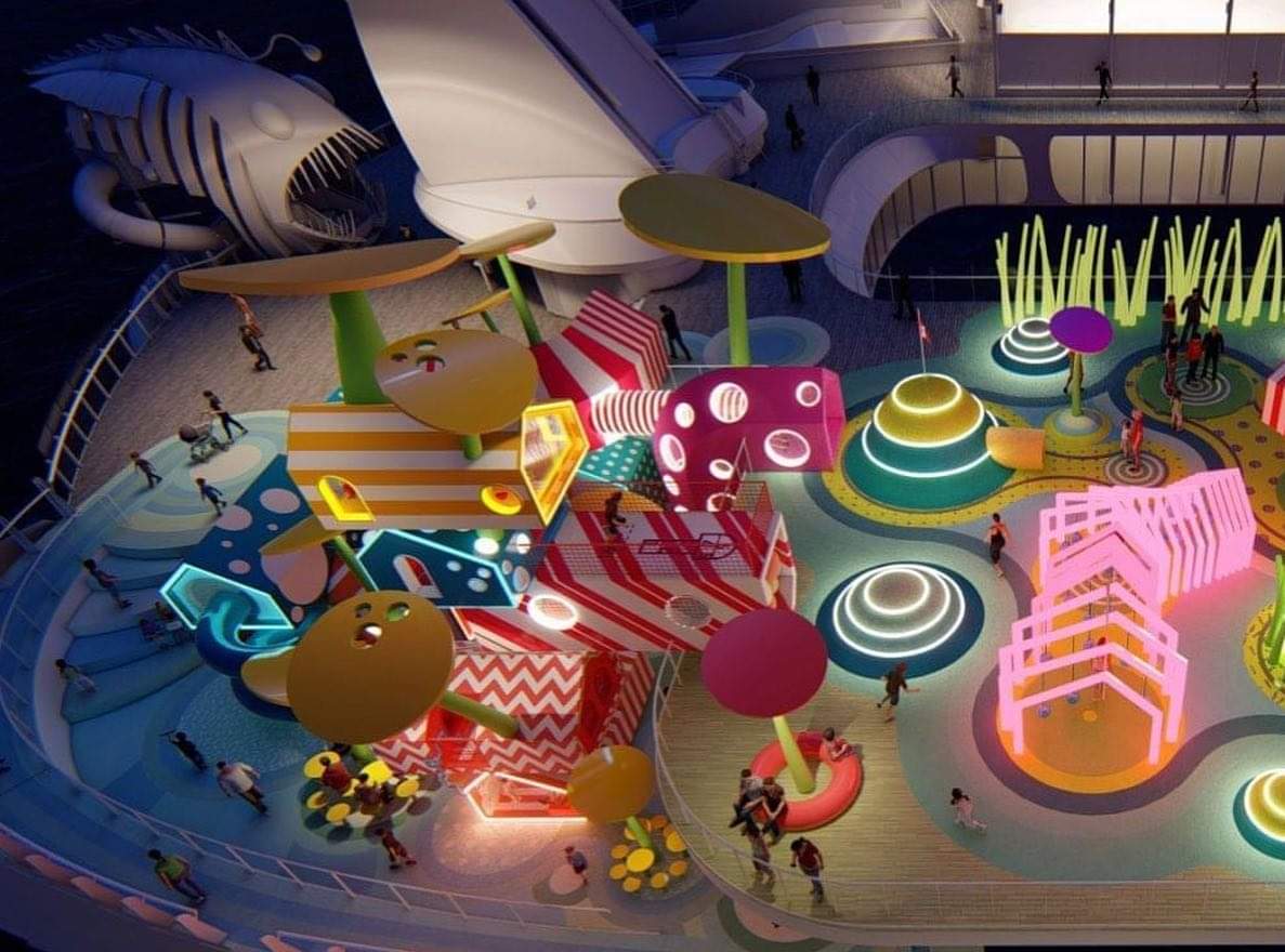 The colourful new attraction takes up the space which is usually occupied by a Flowrider and a mini golf course on other Oasis class ships.